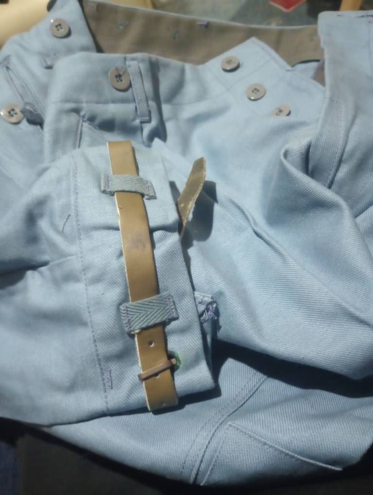 Genuine Swedish army pants M59 are cargo-style blue trousers with reinforced knees. These pants are designed to be durable and suitable for outdoor activities such as hiking or camping. They are made from high-quality materials and feature multiple pockets for storage, including cargo pockets and leather straps on ankles. The reinforced knees add an extra layer of protection to this high-wear area, increasing the longevity of the pants. These pants are designed to be comfortable and practical, with button loop closure. They are an excellent choice for anyone looking for a reliable and functional pair of outdoor pants.